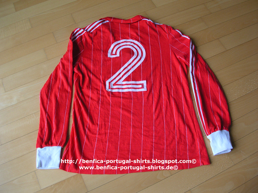 Este tipo de camisolas, pelas informacões que pude encontrar, foi apenas utilizado em treinos. Trata se de um modelo que foi produzido entre 1983 e 1984. Existe aínda um outro modelo vermelho com listas brancas e gola diferente que foi a versão de mangas curtas.